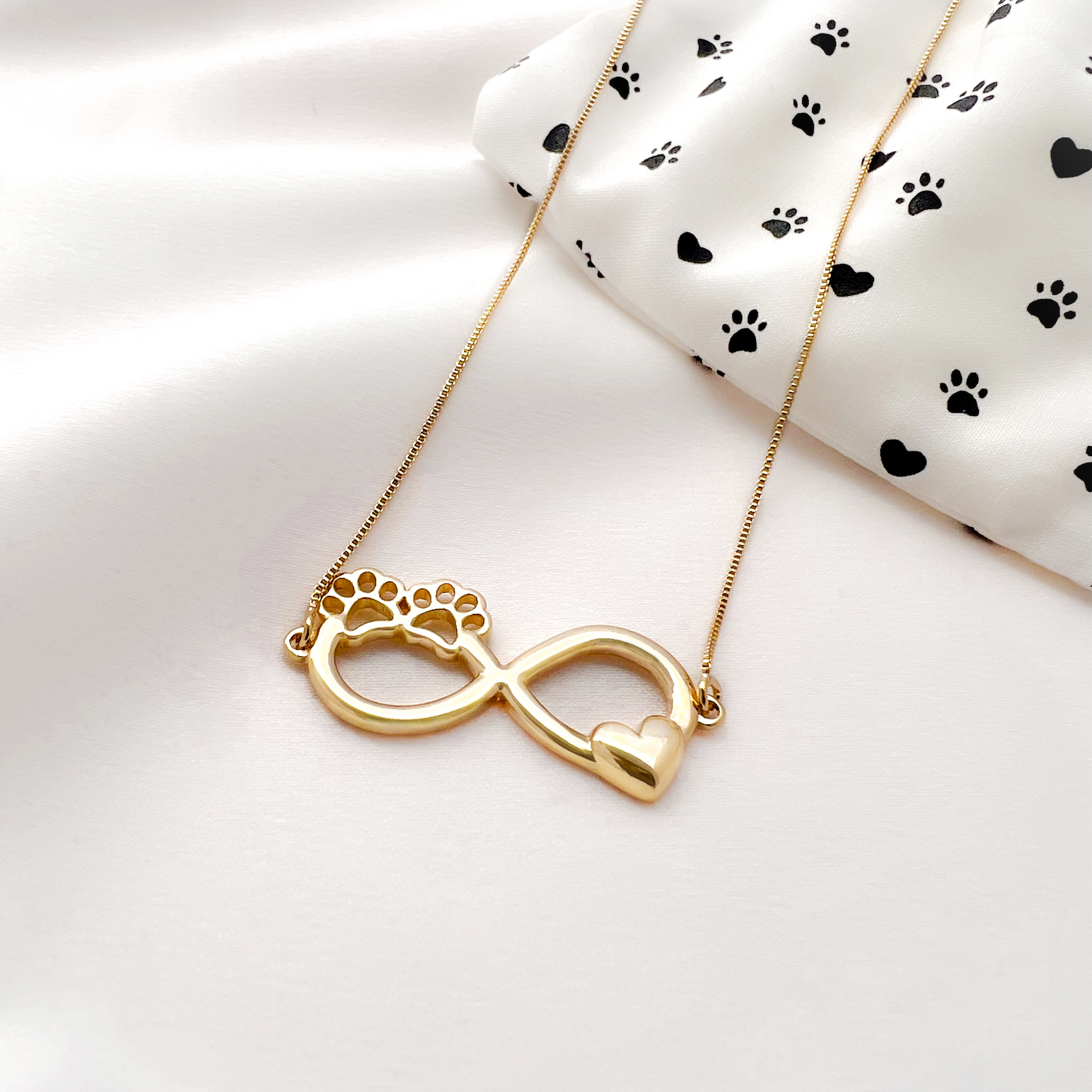 Because pet love truly is infinite, the Infinity Necklace with Paw Prints is a meaningful and beautifully crafted piece that says it all—without saying a word. Designed in 18k gold plating, the pendant combines the infinity symbol, a heart, and two delicate paw prints to represent everlasting love and loyalty.