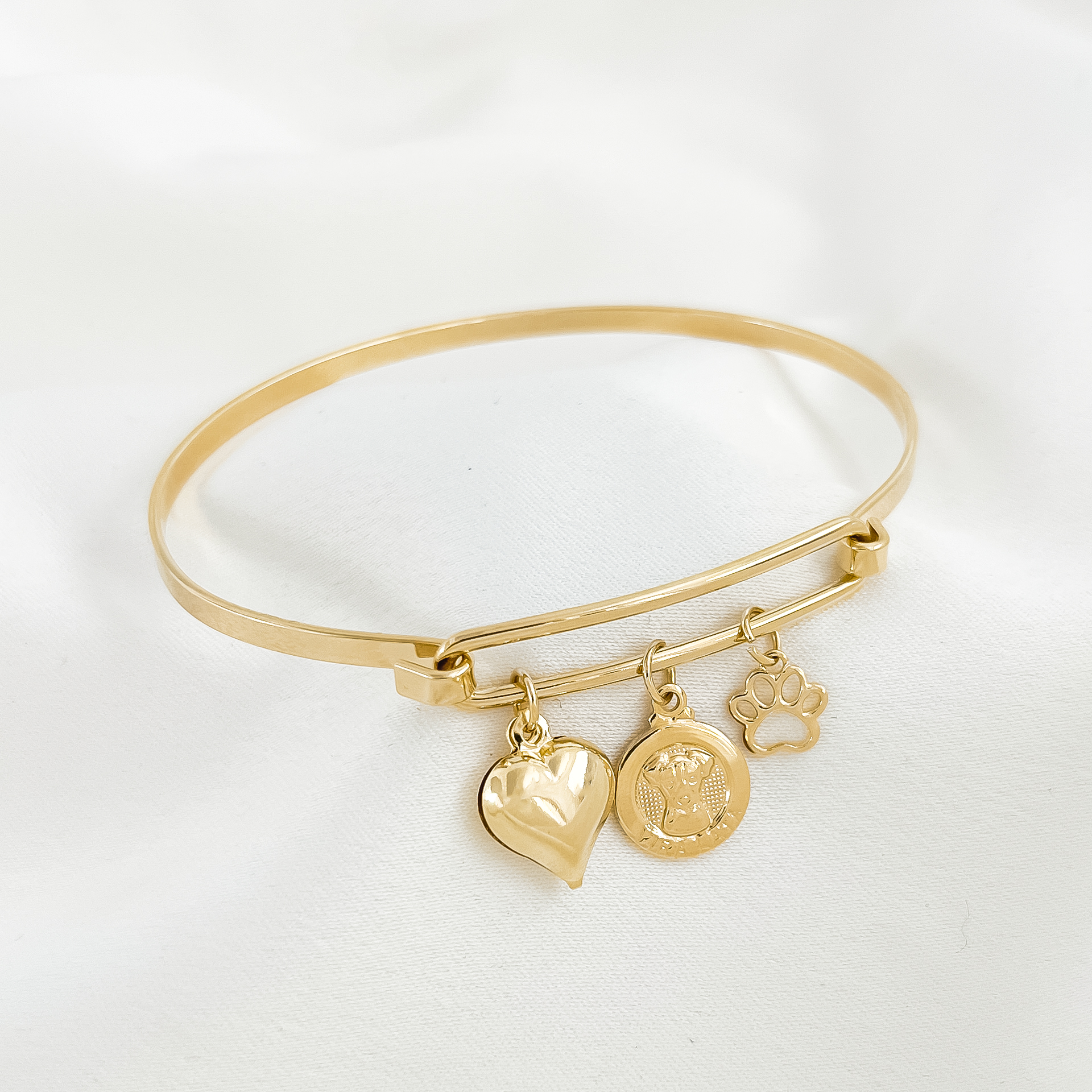 This smooth, polished metal bracelet with a secure lock clasp combines elegance and heartfelt meaning—perfect for pet lovers seeking quality accessories to offer their customers.