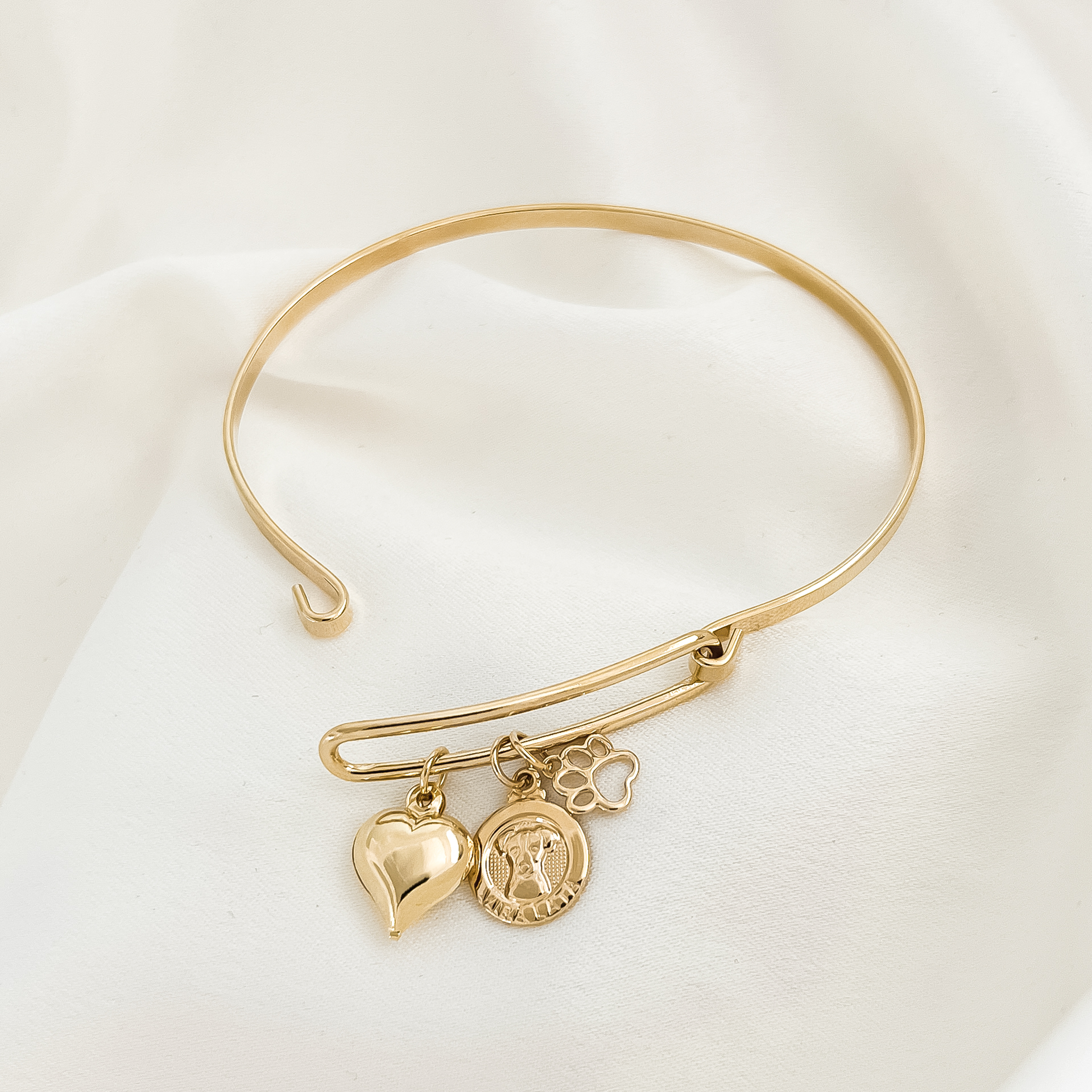 Smooth Metal Bracelet with Lock and Pet-Themed Charms – Gold Plated